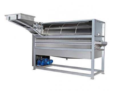 具有先進水平的橙橘磨油機械,有結構新穎緊湊、節(jié)能、生產能力大等優(yōu)點。作業(yè)原理:當橙橘進入進料斗后,在均果翻爪的效果下均勻地進入磨油倉內,并在數(shù)根帶刺磨油棍的效果下翻滾并沖突橙橘外表的油胞,一起在帶刺的空心螺旋效果下,輸向出料口端;而且該機在空心螺旋的斜上方設有噴淋管,從噴淋管噴出的水沖走橙橘上的油后,既能夠減小橙橘與橙橘之間粘度,便利橙橘翻滾,又能夠將油順暢地流入集油斗內。為避免噴淋孔阻塞,在噴淋管內裝有不銹鋼鋼絲刷,及時疏通噴淋孔。