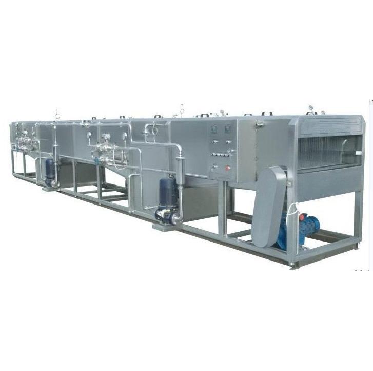 噴淋殺菌機,采用循環(huán)熱水噴淋殺菌、溫水預冷、冷水冷卻等多段處理,具有節(jié)水、節(jié)熱能等優(yōu)點。